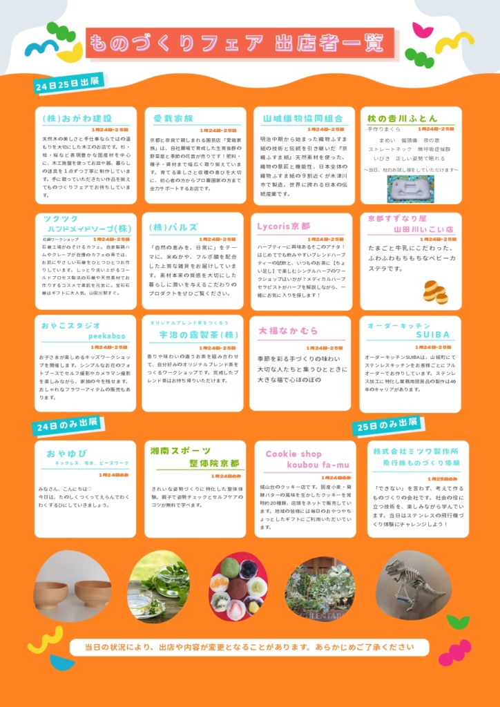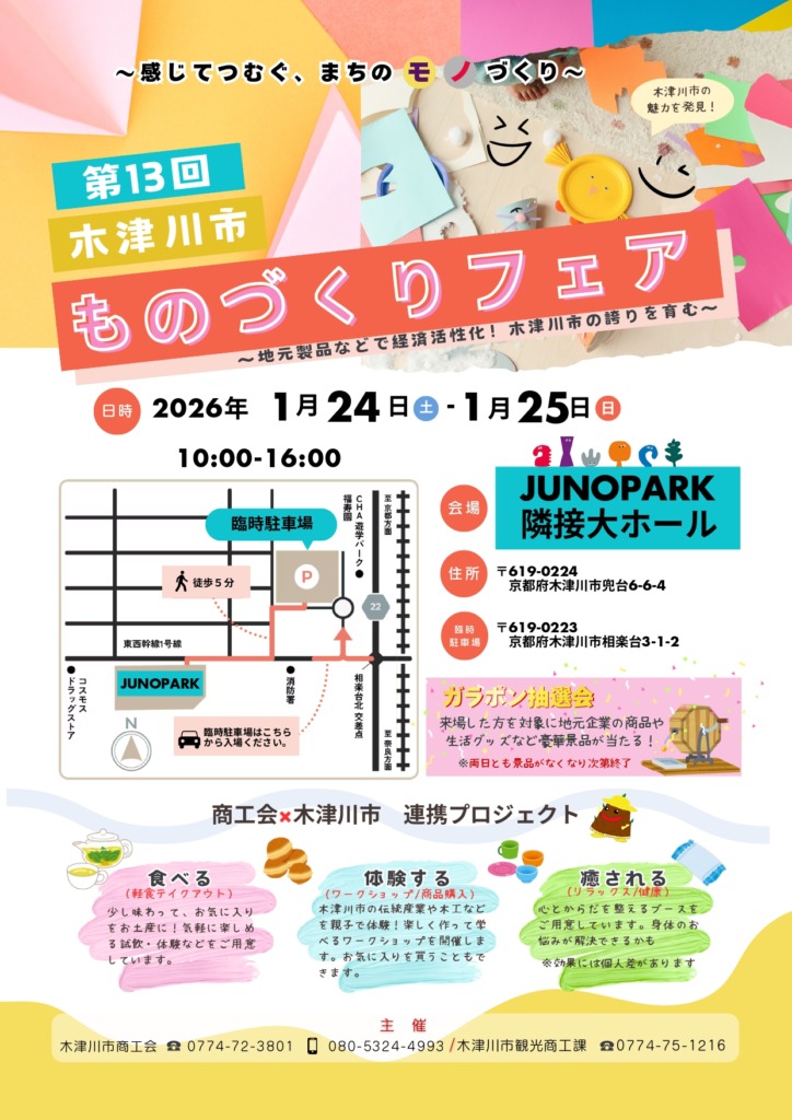 第13回木津川市ものづくりフェアに出店します。
