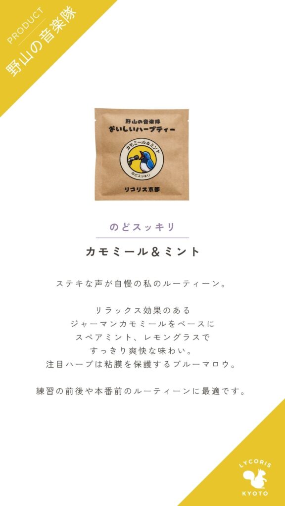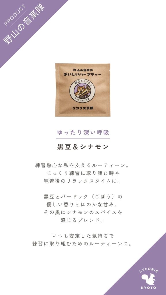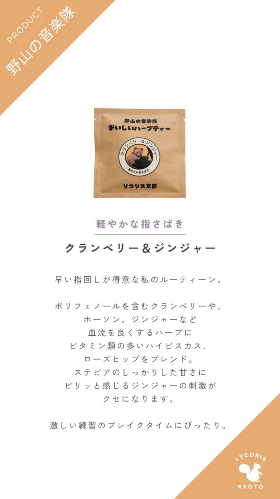 その一つとしてリコリス京都は、音楽家のルーティーンとしてハーブティーを提唱します。