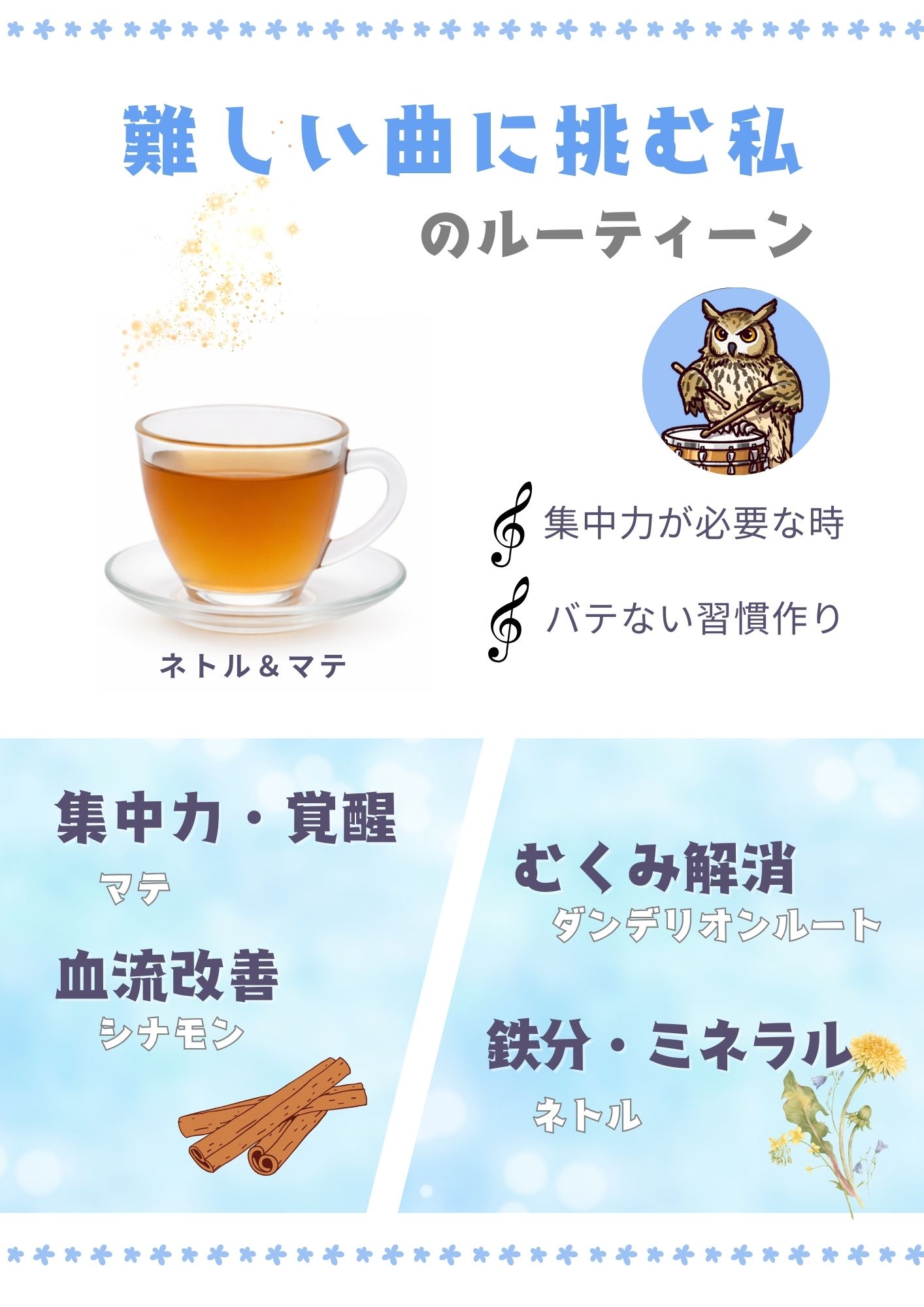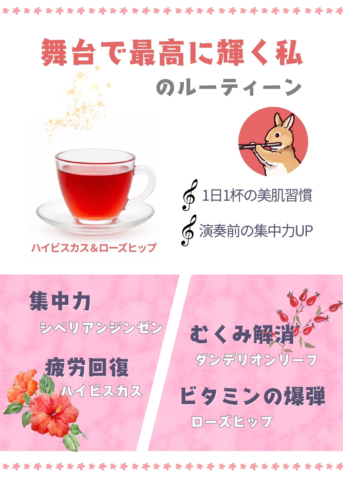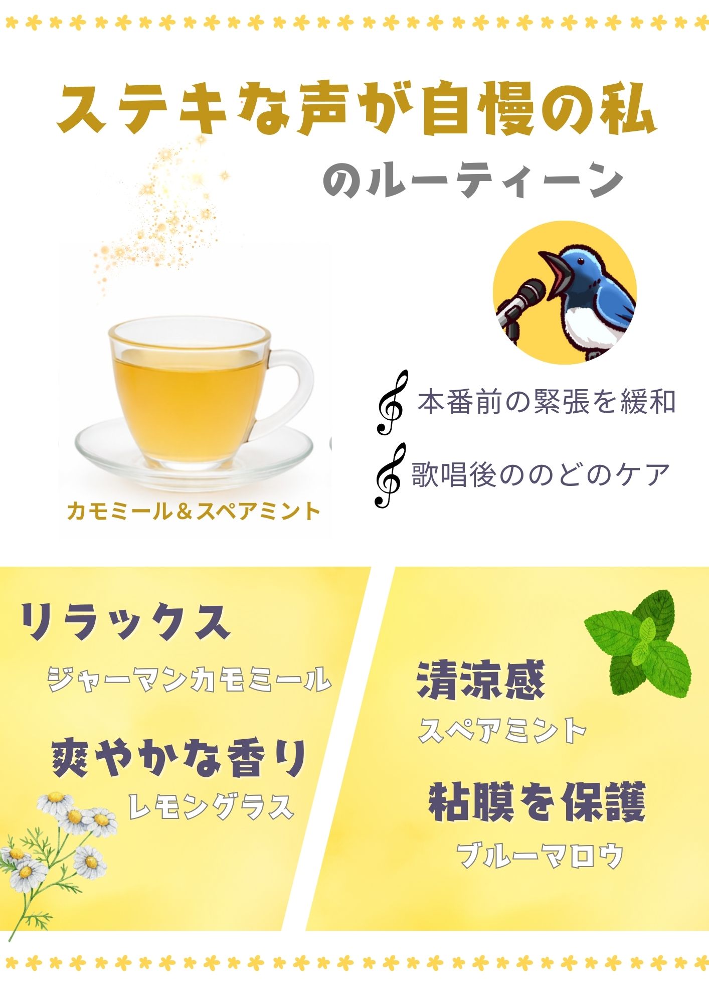 「練習に入る前のハーブティー」「本番前のハーブティー」と脳が覚えることで、心と体が整う“スイッチ”にすることができると考えています。